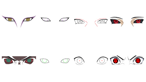 The “How to draw Sharingan Eyes step by step” app teaches you how to draw eyes from anime on a piece of paper.