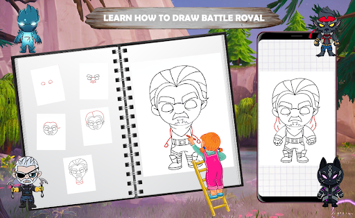 - This app contains dozen of your favorite Battle Royale Characters drawing pages.