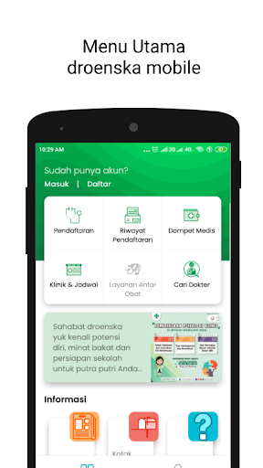 Доктор больницыСоловая корова Соло продолжает развиваться вместе с уверенностью людей Суракарты и ее окружения, которые выбрали нас в качестве поставщиков медицинских услуг.Чтобы предоставить лучший сервис, мы представляем новые мобильные инновации Droenska.Основная функция облегчит вам регистрацию в соответствии с расписанием врача, который вы выбрали.