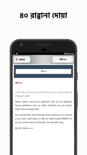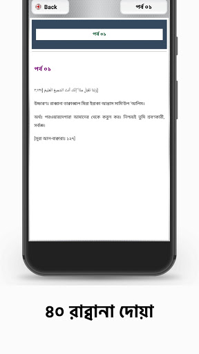 This application contains 40 Rabbana dua with Arabic version of it, transliteration, translation and Importance in Bengali.