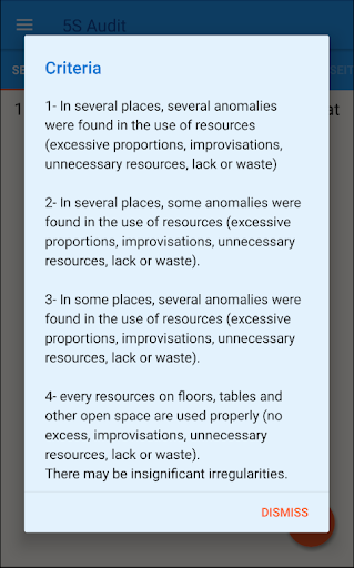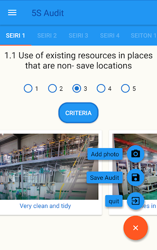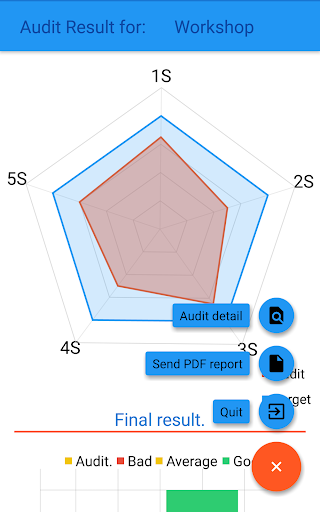e-5S provides an agile tool for 5S audits: -Manage your 5S areas: Add, Delete, Rename your areas -Audit: Easy to use app. fluent and effective -Manage: Check the Score and the graphs. Send a PDF report.