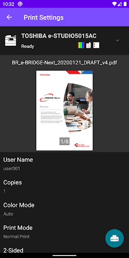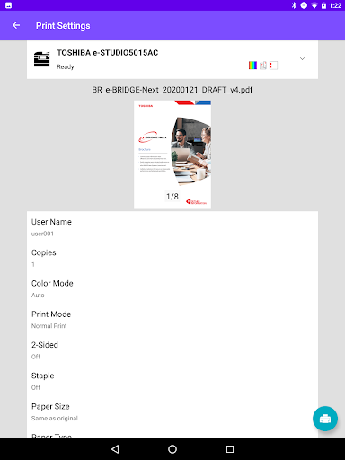 e-BRIDGE Print & Capture is an application that allows you to print and scan from TOSHIBA MFPs utilizing your Android device.