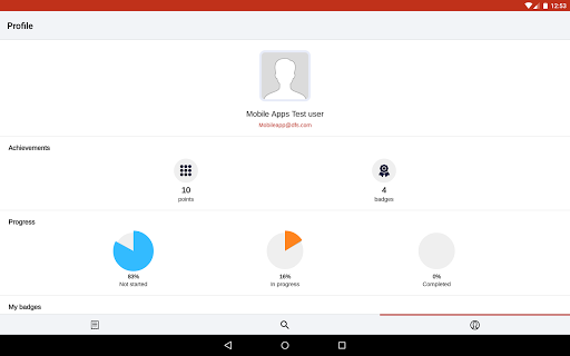 - View progress, and gamification elements like points, levels and badges