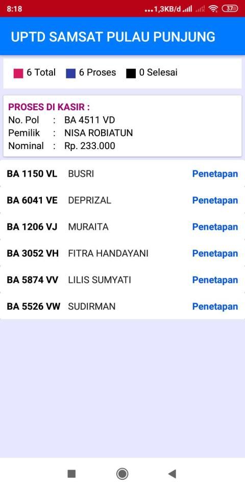 Aplikasi layanan publik pajak kendaraan, Samsat Keliling, monitoring status transaksi di uptd samsat, dan Sistim Informasi Payment Point pelayana pajak kendaraan bermotor Provinsi Sumatera Barat.