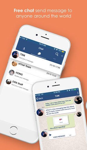 eChat APP is a free messaging app that allows you to easily connect with family and friends across countries. Use eChat APP to send and receive messages, photos, and voice messages.