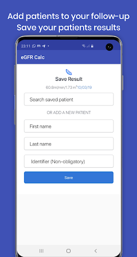 --> Track and save your patients' eGFR using their full name and an identifier.