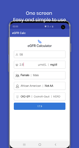 eGFR is a useful diagnostic and follow-up measurement for acute renal failure and chronic kidney disease (CKD). The application is intended for the use of Nephrologists and other physicians who monitor kidney function.