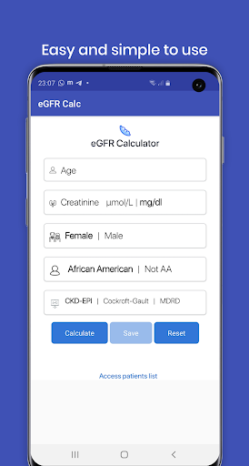 Calculate your patients' eGFR easily using one of three GFR calculators (MDRD, CKD-EPI and Cockroft-Gault).