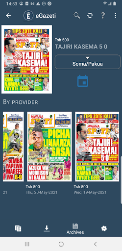 Mwanaspoti, The Citizen, Mwananchi, Alhuda, An-Nuur, Daily Nation, Daily Monitor, Business Daily, The East African, Taifa Leo.
