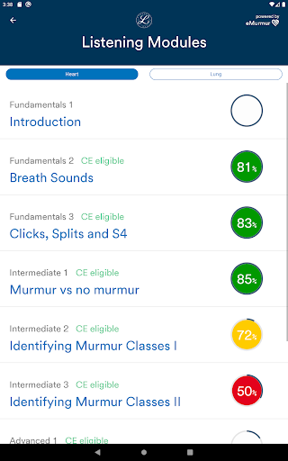 Littmann Learning - powered by eMurmur - is the app for auscultation education. Now educators and students can have access to heart sounds, lung sounds, learning modules and more - anywhere, anytime. The app gives users access to real patient heart and lung sounds.