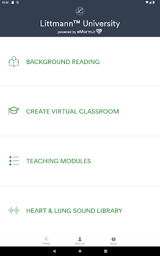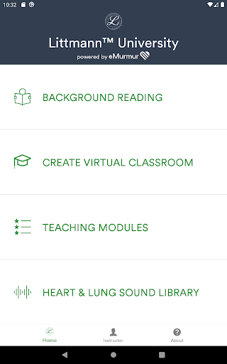 Littmann University - powered by eMurmur - is the app for auscultation education. Now educators can have access to heart and lung sounds, learning modules and more - anywhere, anytime. The app gives users access to real patient heart and lung sounds to help educate and test the recognition of benign and pathological sounds.