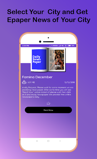 Currently app gives you epapers / LiveNews Paper which areeasy to read :