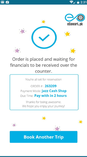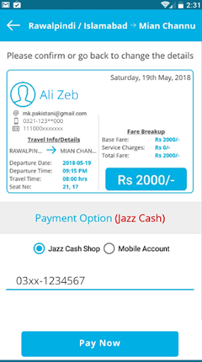 eSawari has an ongoing commitment to booking. Search for your destination and select your desired bus based on service, departure time, bus fare, rating & reviews and a variety of attractive features. No more hassle for payment, use Jazzcash shop or Jazzcash mobile account for secure payment for your bus bookings.