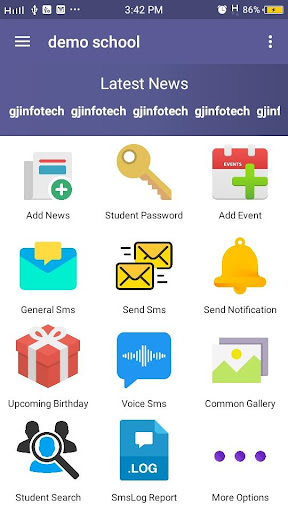 AdminLogin : Fees Reports, Send Bulk SMS, Notifications, Gallery ,Flash News etc