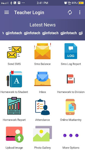 Teacher Login: Online Mark Entry, Homework uploading, Attendance Marking, SMS