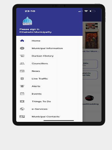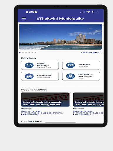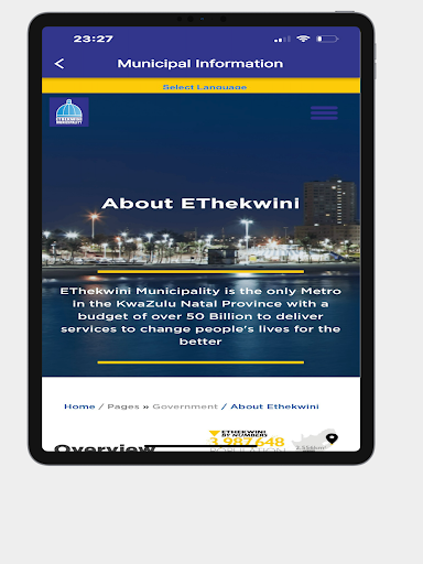 Designed to integrate a range of services offered by municipalities. A responsive service delivery application designed to enable municipalities to interact with their customers in real-time. Citizens can now receive news, traffic alerts and events. Customers can now view available Bills from the application. Other features include a Public Services Map, Around Us Map, Emergency Contacts, Municipal Information, Entertainment and Twitter.