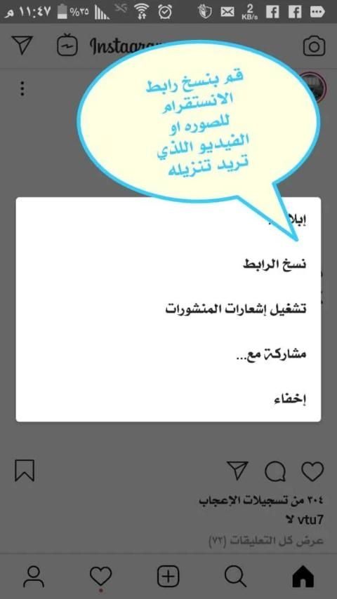 2- قم بنسخ رابط الصوره او الفيديو الذي ترغب بتنزيلة.