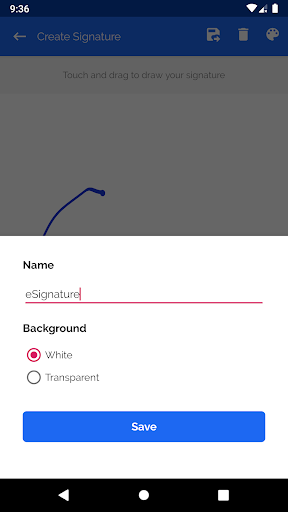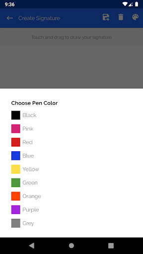 Choose from a number of different colors for your signature. At the tap of a button you can capture your esignature and save the image to add on any document you like. Save your signature in different colors to save time for use later or to share. Create a handwritten signature on your device that looks professional and real with easy signature.