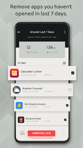 Easy Uninstaller or Multi Apps Uninstaller is a handy uninstall tool that will help you to find and remove apps from your device. It Uninstall multiple apps from your device simply and quickly from the list of user installed applications. Easy Uninstaller app also show you the apps list which are not being used for Last 7 day & Last 30 days.