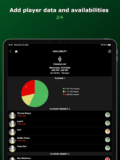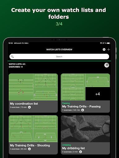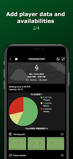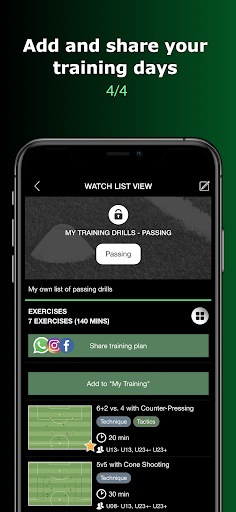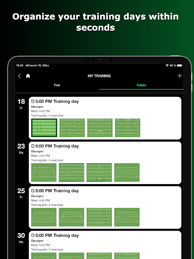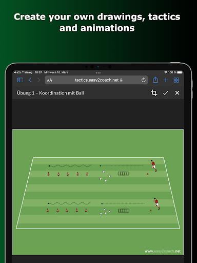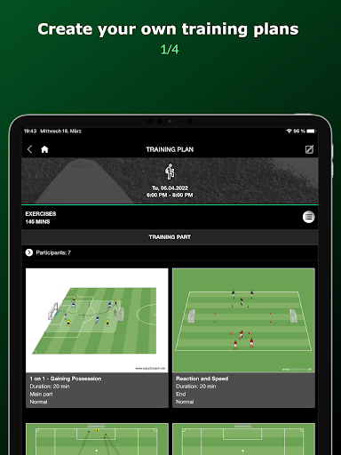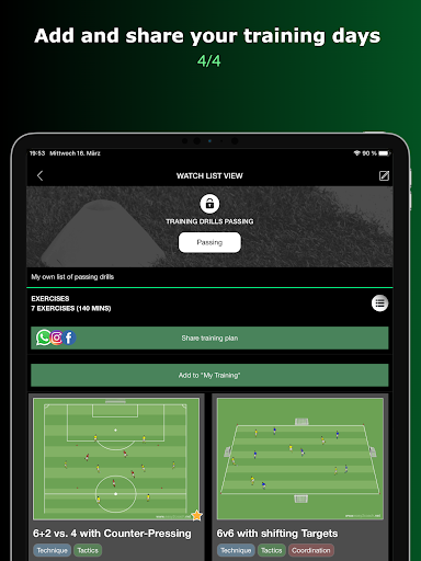 You can also create your own exercises with new graphics, tactics and animations or upload existing images into this app. Training planning has never been easier than with easy2coach Training - Your Soccer Coaching App