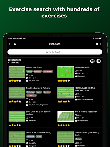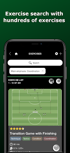 - Hundreds of soccer exercises categorized by key criteria like ball techniques, tactics, physique, forms of play and many more