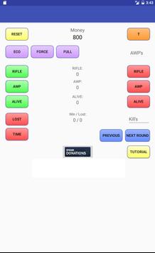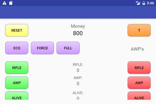 step: 3 : use the buttons on the sides to put in how many rifles and awp’s the enemy has at the end of the round, and how many enemies is alive