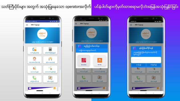 MM Topup အပလီေကးရွင္းေလးဟာဆိုရင္ ျမန္မာႏိုင္ငံရဲ႕ ဆက္သြယ္ေရး ေအာ္ပေရတာ ေလးခုရဲ႕ ဝန္ေဆာင္မႈေတြ၊ ဖုန္းေငြျဖည့္ျခင္း၊ တျခားေသာ အထူးဝန္ေဆာင္မႈ ပ႐ိုမိုးရွင္း သတင္းအခ်က္အလက္ အစရွိတာေတြကို ဒီ အပလီေကးရွင္းေလးထည့္ထား႐ုံနဲ႔ လြယ္လြယ္ကူကူ အဆင္ေျပစြာ သုံးႏိုင္မွာျဖစ္ပါတယ္။