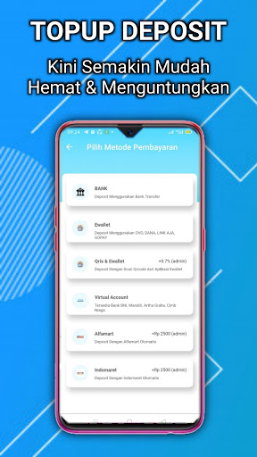 Baki deposit boleh dilakukan melalui pemindahan bank (BCA / Mandiri / BNI / BRI), QRIS, Indomaret dan Alfamart serta akaun e-Wallet anda seperti dana, ovo, hanya pautan dan gopay