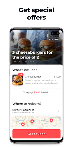 Eating out with Eatrel is especially nice! Eatrel helps you find nearby places where to eat with discount. Open an app and discover special offers nearby places have: simple percent discounts, sets with special prices, happy hours and so on. Enjoy!