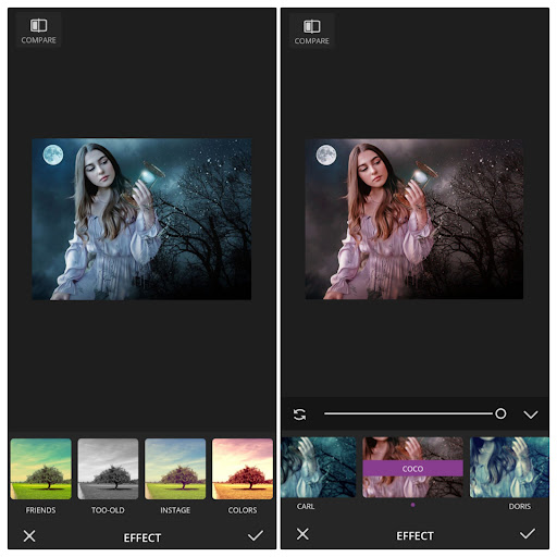 • Adjust the tone of the image with overlays - magnify or cool the tone or add surreal shadows.