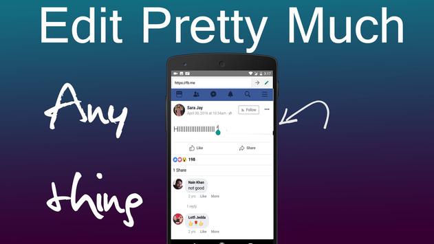 Edit and alter your favorite web pages on the go. Editwebpage allows you to edit contents including articles, blogs, online chats, search results and much more without manipulating the webpage commands.