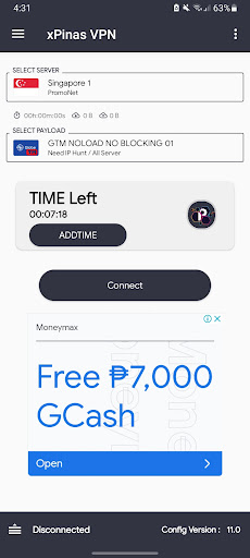 xPinas vpn is a user friendly vpn that you can use easily. Just click any server and connection you want then click on Connect button.