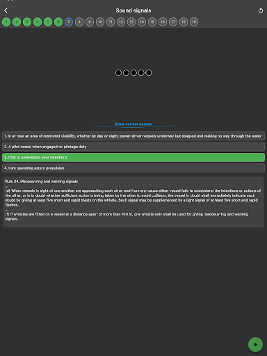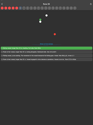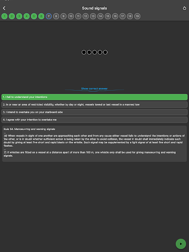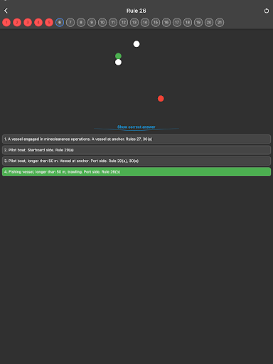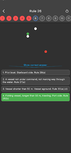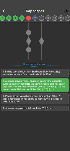 Our app features quizzes that cover all COLREGs rules, making it easy for you to consolidate your knowledge and track your progress. With our smart functionality, you can revisit questions and review challenging concepts, helping you to master COLREGs in no time.