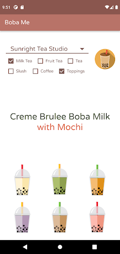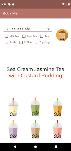 Do you have a boba craving but don't know what drink to get? Boba Me lets you choose from your favorite boba shops and will generate a random drink from their menu. Got preferences? Want only milk tea or fruit tea and no toppings? Check the boxes with your preferences, and Boba Me can generate a random drink just for you!