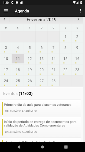 - Agenda: agenda centralizada, com o Calendário Acadêmico, dias de aulas e tarefas do Moodle