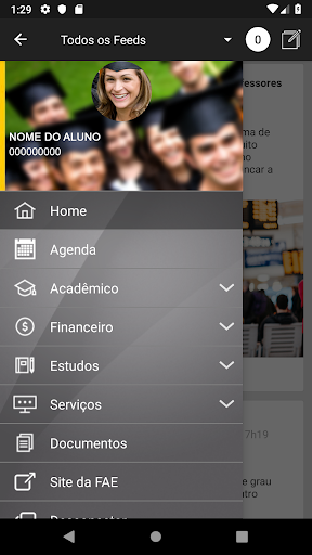 - Financeiro: acesse seu boleto e outras informações financeiras relacionadas à FAE