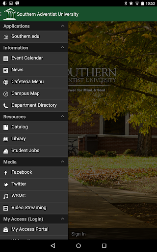 The official Southern Adventist University app will keep you up-to-date. News, calendar, cafeteria menu, campus map, directory and more.