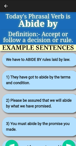 Now let me tell you about this app, in this app we have plan to add 5000 plus phrasal verbs of everyday life. You will find each and every phrasal verb has been explained with its meaning, and each phrasal verb has many example sentences. so that you can understand the meaing of the phrasal verb easily. Because these examples are taken from real life conversation that will help make the mening clear. and you will remember it for longer time.