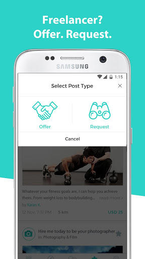 Offer a Service— Post an offer for a service that you want to perform and let nearby users find out about your offered freelance jobs and services.