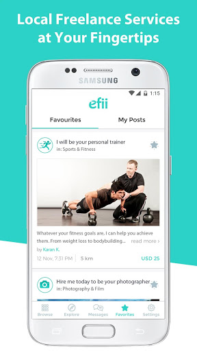 If you want to work with people that live in your area whenever you need a local service, just download efii, pick one of over 20 available category and get started. efii enables you to communicate with users, and it can easily help you get the job done in mere seconds. And if you are a freelancer on efii, you can easily earn some pocket change by doing the stuff you love. Give efii a shot right now and enter the local freelance service revolution!