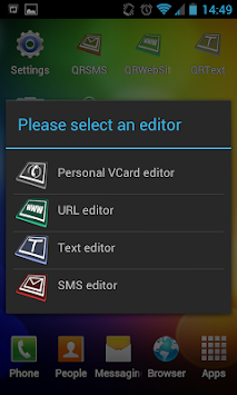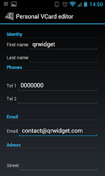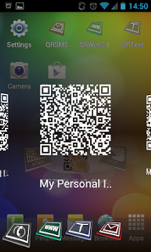 The QRWidget ( QR Code Widget ) is an Android Widget that has a nice look on the screen of your mobile phone. It allows you to edit and display a QR Code containing different kind of information such as URL, SMS, Free Text, or personal Vcard information.