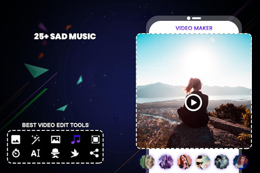 Sad Video Maker with Music app creates photo slideshow with music and theme.