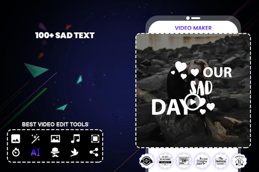 Sad Video Maker with Music helps you to create pics Slide-show from your smart device in a few seconds, along with slide time, frames, sad song and animation effects. Create beautiful Music Slideshow and share with friends and family.