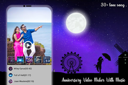 Anniversary Video Maker with Music App easy to use. You can make video with pictures and music from your mobile gallery. Create Amazing Video with app which have over 20 animation theme, Anniversary frame.