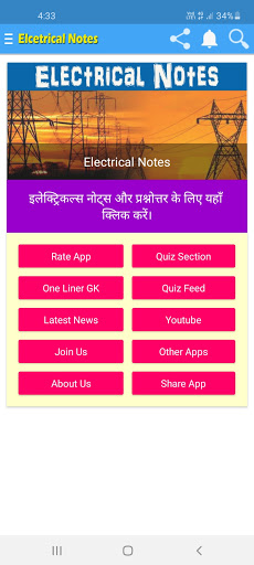 इस मोबाइल ऐप में इलेक्ट्रिकल (ITI Electrician, Wireman Trade Notes) के सभी नोट्स का संकलन किया गया है।