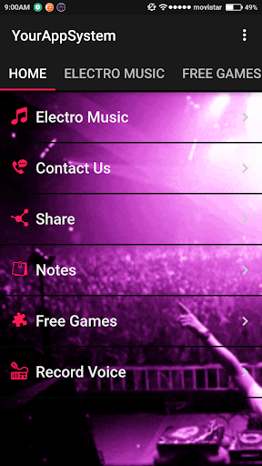 Electro music is a free application that contains several radio stations electro music, DJ Music, Musica House, Musica Techno, Musica trance,