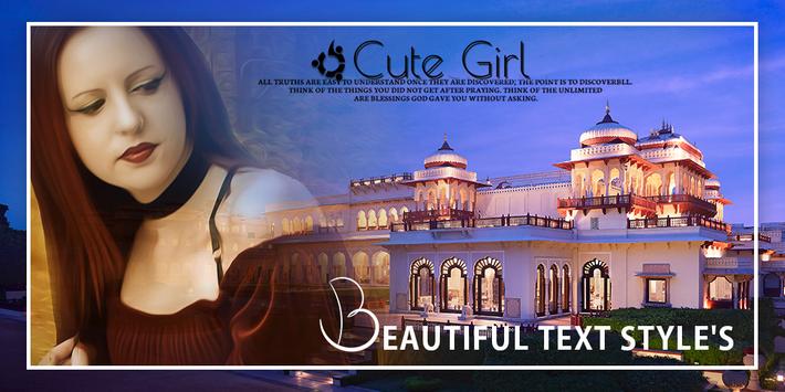 People like to see old architecture In India there is many montage place there people go for tour like in India there are many palace of kings so in this app there are many palace background frames are available from that you can make palace photo frames like you are really going there palace and feel like you visiting montage places.