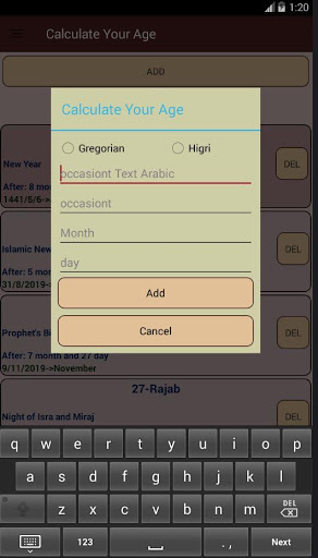 Calculate the age of the Hijri or Gregorian calendar, the knowledge of the difference between two dates, between the Hijri and Gregorian dates, add special occasions to remind them