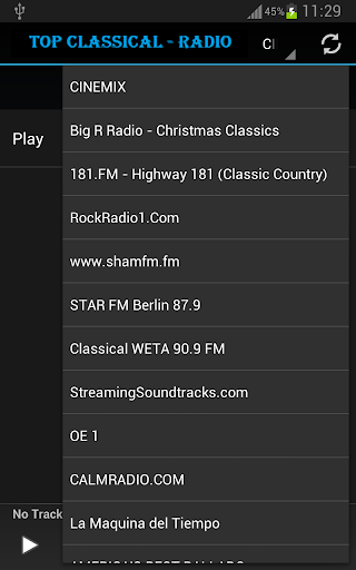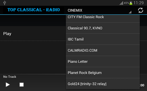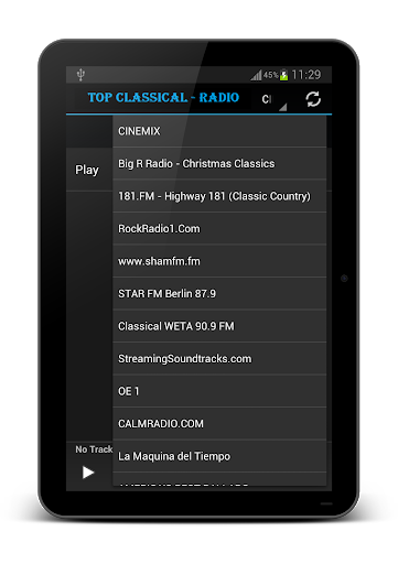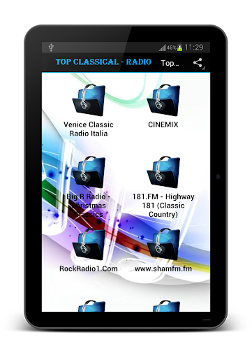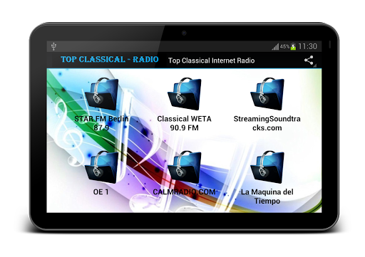 Chamber, Choral, Classical Period, Early Classical, Impressionist, Modern, Opera, Piano, Romantic, Symphony and other. In this app you will find many radio stations.