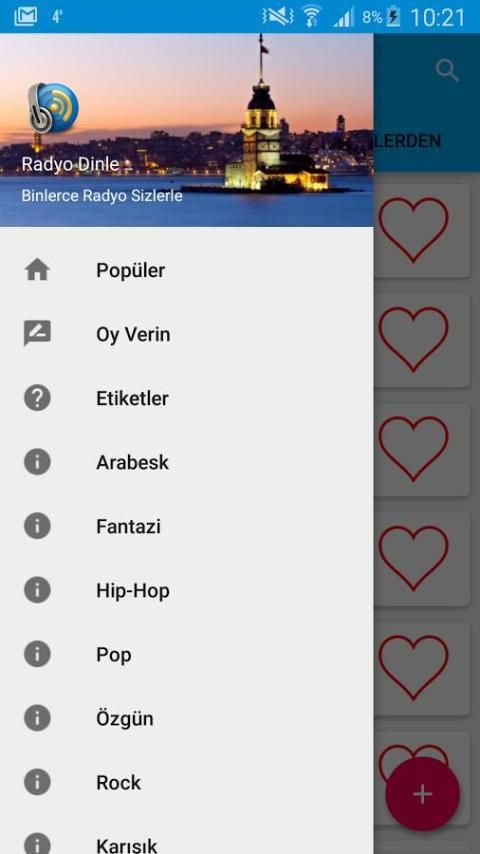 Arabesque, Fantasy, Hip-Hop, Pop, original, rock, mixed, religious, foreign, Turkish Classical Music, Turkish Folk Music, News, Sports, nostalgic, 80, Acoustic Slow, Alternative, World Music, Visually Impaired, Jazz, Classical Music, Lounge, Metal, Electronic